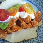 Once the onion mixture has started to caramelize, add in the minced Serrano and all of spices, stirring well to combine… and once the chicken is done, add it all to the onion/spice mix, making sure to scrape up all of the browned bits as well. Pour in 2 cups of broth, reduce the heat and simmer for about 20 minutes until the sauce is thick and perfect – add more broth if you think it needs it and taste for seasonings. Serve it up with all of the trimmings and be ready to get a bit messy!