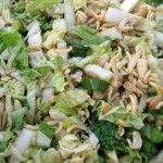 Everyone has enjoyed a version of this at some point, and I’ve always liked it…but it took a combination of a couple of recipes to make me really love it. You can use pre-chopped coleslaw to be quick, but I think slicing your own Napa cabbage is a must – and have everything ready but do NOT toss it all together until right before it’s served. I saw this here, but then also borrowed from an old Atco, Blue-Flame Kitchen cookbook (Mom had to show me where it was!) – enjoy!