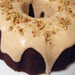 Pour the wet mix, all at once, into the dry mix and use a sturdy spatula to fold it all together. Once there is no trace of flour, fold in the pecans and scrape the batter into your prepared pan. Bake for about 1 hour until it bounces back to a light touch and starts to crack – I found it difficult to tell, so I did use a cake tester. Allow the cake to cool in the pan for 30 minutes before turning it out onto a platter or rack to cool completely before you frost it.