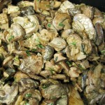 If you’re making this ahead, allow it to cool completely before transferring it to a bowl, covering it and putting it into the fridge. To re-heat, add all back to a skillet at medium-low heat and sprinkle on the reserved mushroom water and/or more cream to bring it back to it’s saucy consistency.