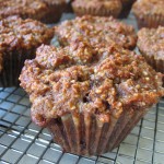 Divide the batter evenly among the 12 cups – they will be quite full, but they don’t rise very much – and then bake for 35 to 40 minutes until the tops are firm, they will be quite dark. Allow the muffins to cool in the pan for 5 minutes and then transfer them all to a rack to cool completely.