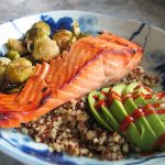 We enjoyed this with Orzo With Roasted Vegetables, and in the photo with quinoa, avocado and roasted Brussels sprouts, but simple rice and roasted asparagus would also be quick and super tasty – and the leftovers are terrific!