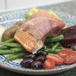 **Update – I borrowed the ‘Niçoise Salad’ idea from Trish Magwood, and while I used this salmon, any protein on a plate of whole vegetables with olives, boiled egg and a vinaigrette drizzle is both really tasty and really quick for a weeknight!**