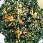 Time it so that you toss the salad about 15 minutes before it’s going to be served so that all of the flavors have time to come together. On the chopped kale, sprinkle the cheese, pecans, raisins and panko, give the salad a toss, shake the dressing and drizzle it on, then toss the salad again – add pepper and/or pepper flakes as you wish. I’ve quadrupled this recipe and it still all disappears!